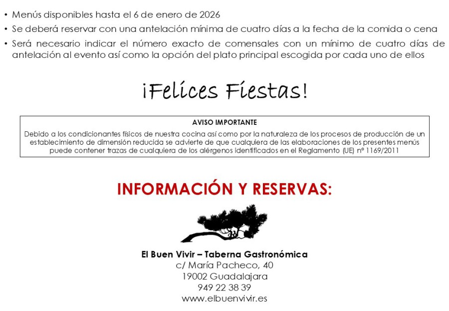 Os deseamos unas Felices Navidades y os estaremos esperando, como cada año, en El Buen Vivir, para hacer de vuestra celebración un momento muy especial.